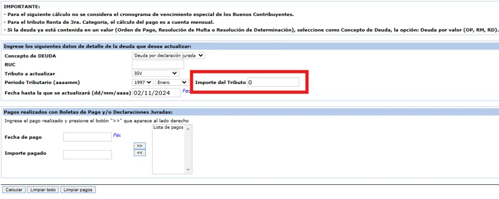 La Calculadora Tributaria es una herramienta diseñada para facilitar a los contribuyentes el cálculo de los intereses moratorios generados por pagos fuera de plazo. Al proporcionar información precisa y actualizada, permite a los contribuyentes estimar cuánto deben pagar por intereses cuando sus tributos han sido pagados con retraso.