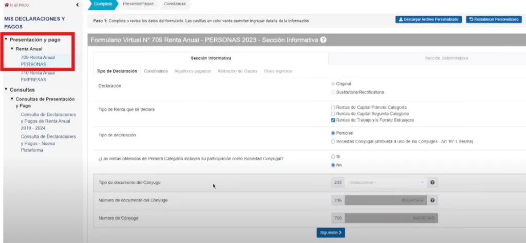 Busca en el menú de la izquierda el formulario N° 709 Renta anual Personas. Para empresas es otro formulario.