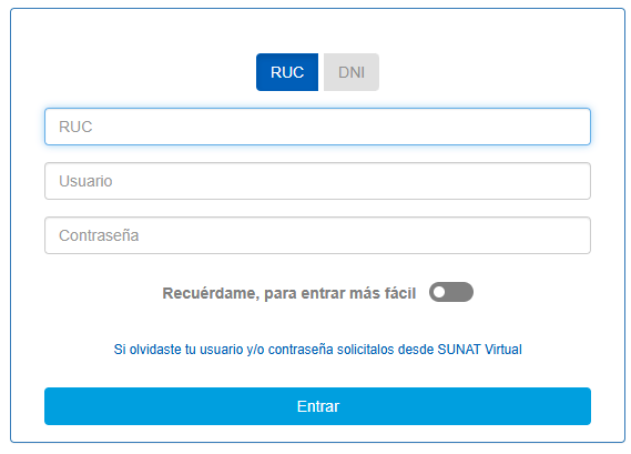 Ingresa con tu numero de RUC o DNI y tu clave.