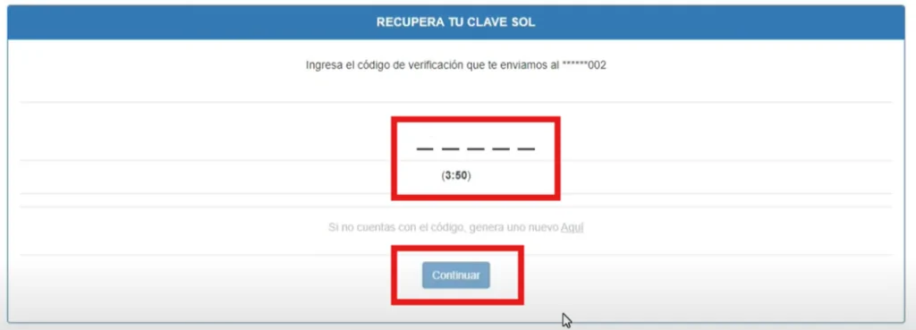 Completa con el código de seguridad que recibiste por el medo solicitado y haz clic en «continuar».