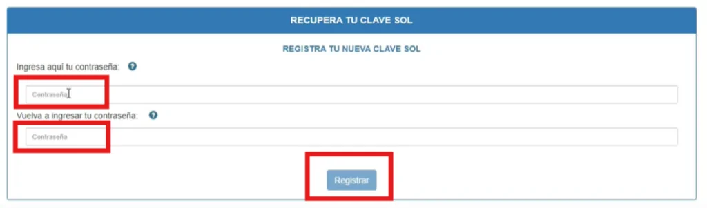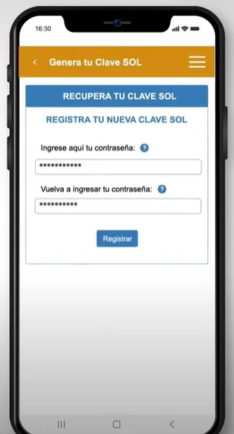 Elige e ingresa tu nueva contraseña , haz clic en «registrar» y listo. el proceso de recuperación queda finalizado.