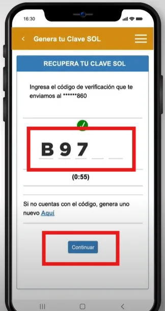 Revisa tu correo electrónico o celular, el sistema te enviará el código que debes registrar